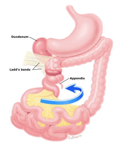 Midgut Volvulus – Reproduced with permission from: Brandt ML. Intestinal malrotation. In: UpToDate, Basow DS (Ed), UpToDate, Waltham, MA 2013. Copyright © 2013 UpToDate, Inc. For more information visit http://www.uptodate.com.